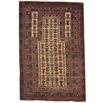 Afghan One-Of-A-Kind Tribal Balocuhi Wool Rug (3′ x 4’7)