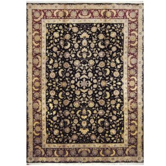 Indo Hand-knotted Tabriz Wool & Silk Rug (9′ x 12′)