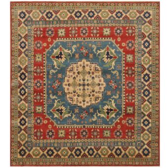 Afghan Hand-knotted Tribal Kazak Wool Rug (8′ x 9’10)