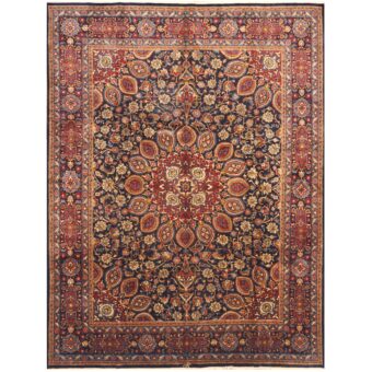 Persian Hand-knotted 1960’s Semi-antique Mashad Wool Rug (9’7 x 13′)