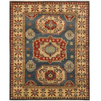 Afghan Hand-knotted Tribal Kazak Wool Rug (5′ x 6’3)