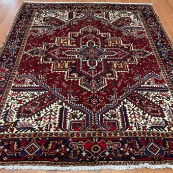 Fine Persian Hand-knotted Heriz Wool Rug (7′ x 9’9)