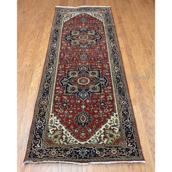 HERAT ORIENTAL Hand-knotted Indo Serapi Wool Runner (2’6 x 10′)