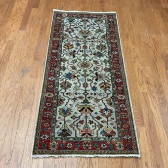 HERAT ORIENTAL Hand-knotted Indo Serapi Wool Runner (2’6 x 12′)