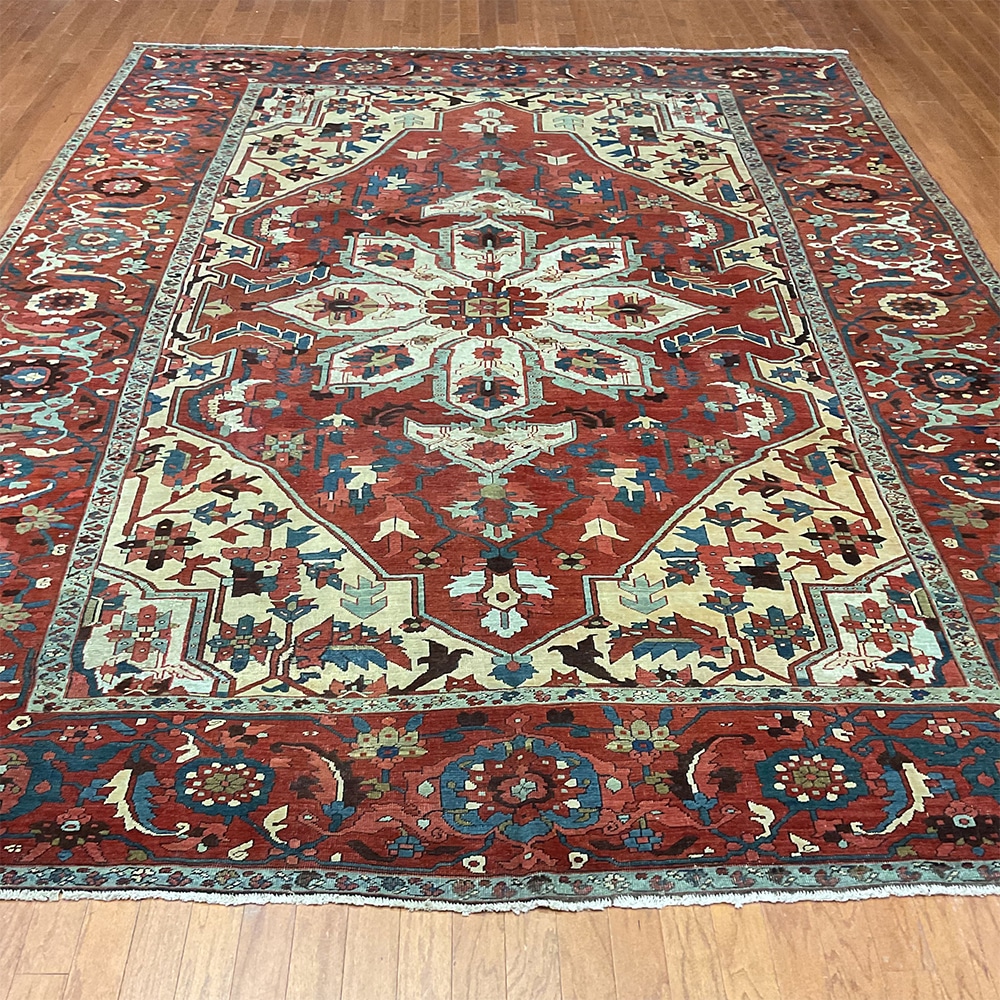 Protect your hardwood or tile floors with this beautiful Serapi wool area rug. Made in the 1880s, this rug is a true antique that gives your decor an elegant and refined look that is perfect for traditional spaces. This rug is hand-knotted to offer the best in quality and craftsmanship that continues to stand the test of time. The neutral color scheme seamlessly fits into your classic decor, and the material is free of latex to guard against allergic reactions. The process of rug making includes cleaning, washing and dyeing the wool, and then weaving the rug with vegetable-dyed wool.