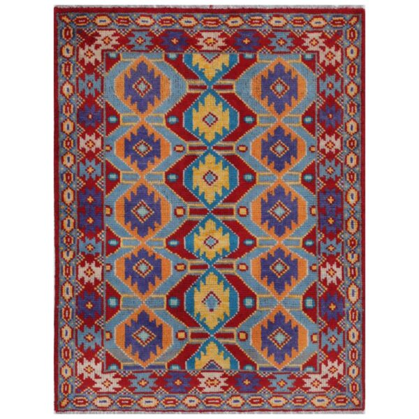 Kargahi rugs originated in refugee camps in Peshawar, Pakistan and were woven by Afghan weavers. The designs are typically at their heart traditional and worked with the usual vegetable dyes, however the weavers spend time crafting unique carpets by choosing nontraditional colors or altering the otherwise traditional designs. The process of making a rug includes cleaning, washing and dyeing the wool which is sourced from local villages.
