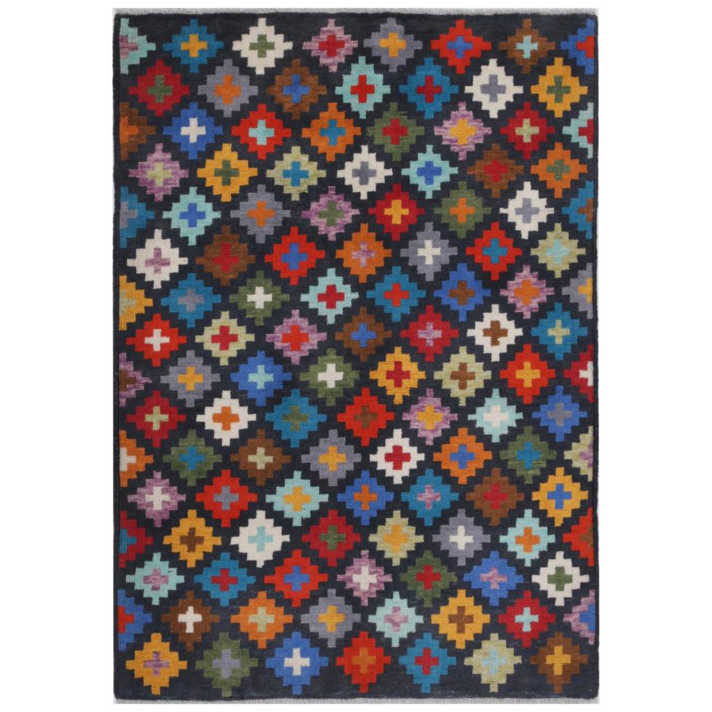 Kargahi rugs originated in refugee camps in Peshawar, Pakistan and were woven by Afghan weavers. The designs are typically at their heart traditional and worked with the usual vegetable dyes, however the weavers spend time crafting unique carpets by choosing nontraditional colors or altering the otherwise traditional designs. The process of making a rug includes cleaning, washing and dyeing the wool which is sourced from local villages.