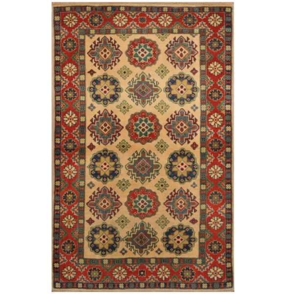Kazaks are a type of Armenian rug that were historically woven in the southern portion of the Caucasus region of the Middle East. The production of rugs in that region is limited to the villages practicing traditional weaving, therefore these beautiful designs are reproduced by Afghan weavers in the northern and central parts of Afghanistan. Local elements of design and construction bring a unique beauty to the ancient patterns that the weavers create. The process of making a rug includes cleaning, washing and dyeing the wool which is sourced from local villages.