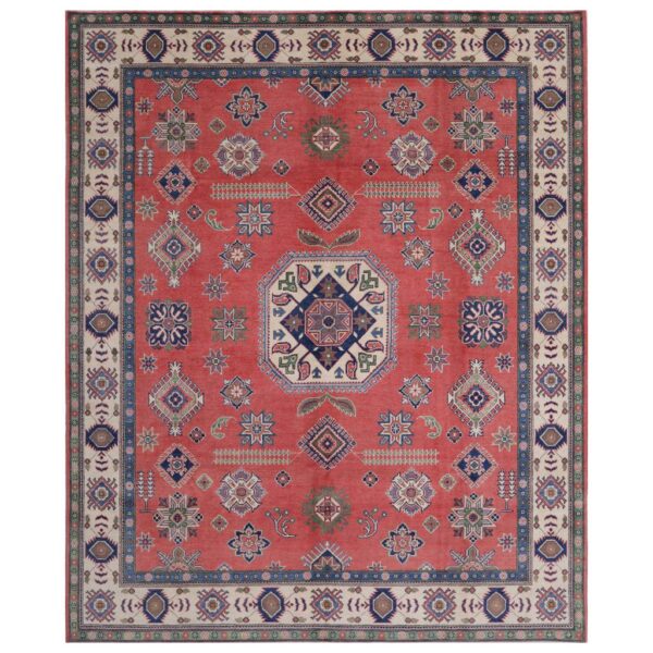 Afghan Hand-knotted Vegetable Dye Kazak Wool Rug (8′ x 9’10)