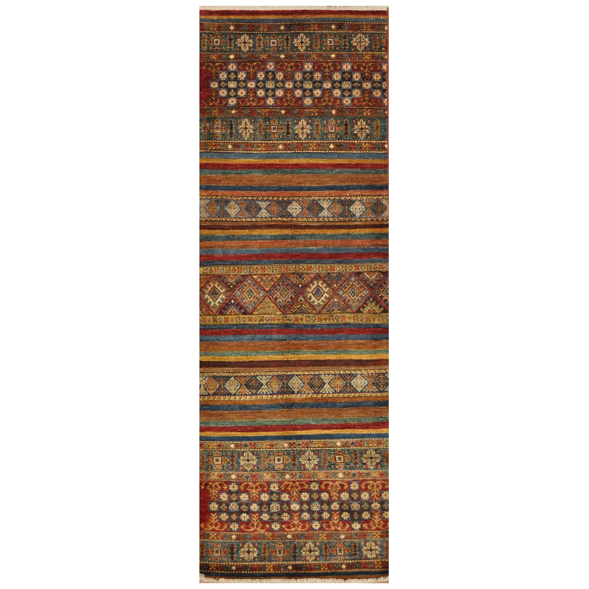Afghan Hand-Knotted Khorjeen Kazak Wool Runner (2’9 x 8’2)
