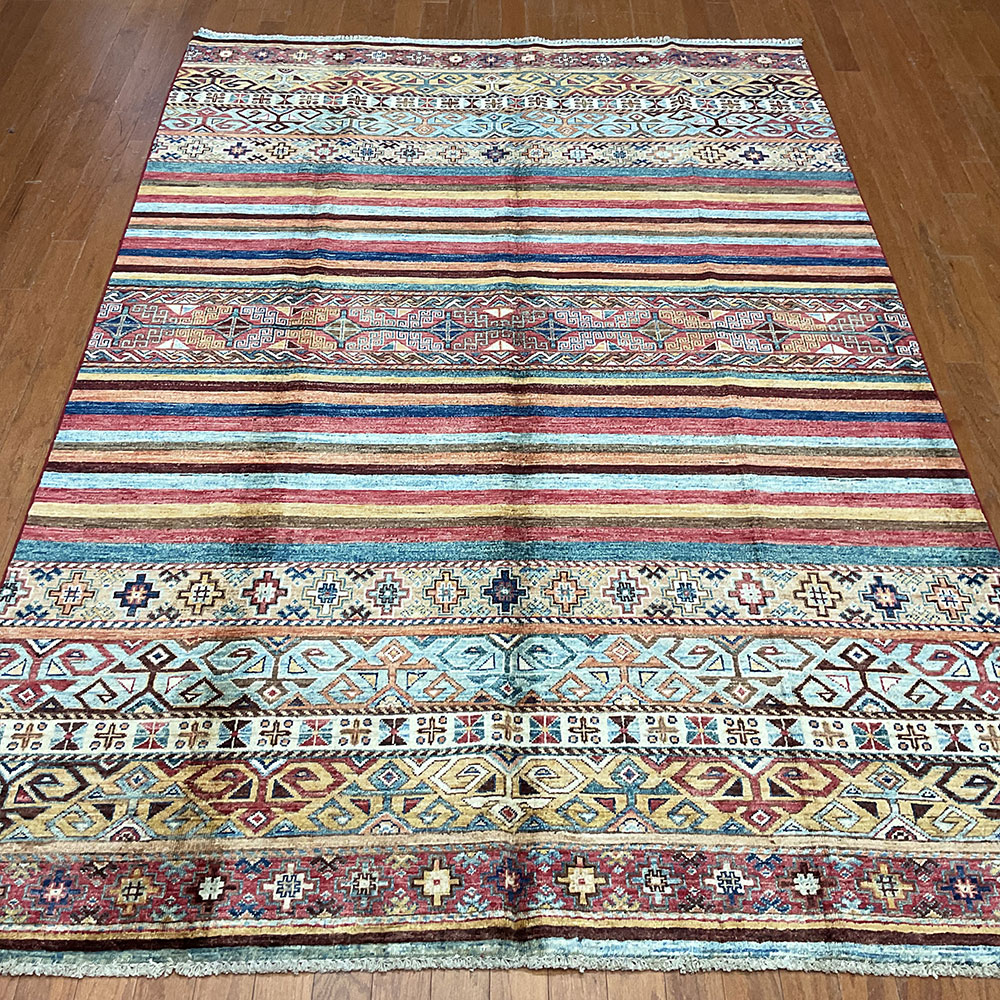 Afghan Hand-Knotted Khorjeen Super Kazak Wool Rug (5’8 x 8’3)