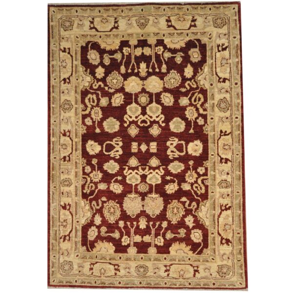 The design of this rug originates from Antique Turkish Oushak rugs which are extremely rare and expensive. The Afghan weavers have been able to re-create these beautiful rugs which resemble similarities to the originals, with high quality hand-spun wool and pure vegetable dyes. The antique Turkish Oushak design has been reproduced by Afghan weavers in the villages of northern Afghanistan by the Turkoman and Hazara tribes. This particular rug was made by village weavers settled in central Afghanistan using traditional methods of weaving. The process of making a rug includes cleaning, washing and dyeing the wool which is sourced from local villages.