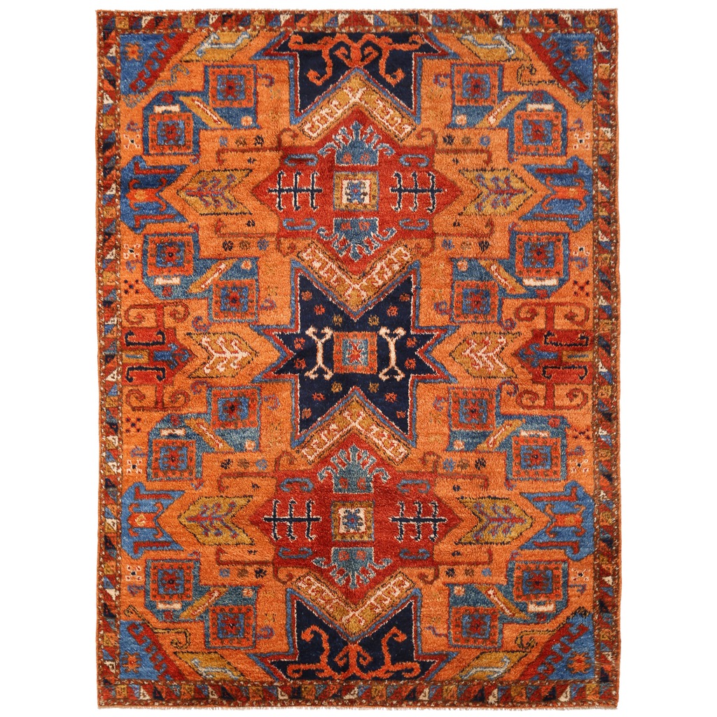Gabbeh carpets originate in another region but are now famously made in Afghanistan, where local weavers use beautiful vegetable dyes to produce the traditional geometric, almost cubist designs. Despite being traditional and ancient the designs are quite modern looking and very popular in today’s homes. This particular carpet has a longer pile to produce a natural shag rug made by hand with precision and soft plush wool. The vegetable dyes most commonly used are madder, the root of a spindly bush, which is used to create a red color, walnut peel for dark brown, pomegranate peel for light brown, and sparak, which is a wildflower from the steppes, is used for yellow. The process of making a rug includes cleaning, washing and dyeing the wool which is sourced from local villages.