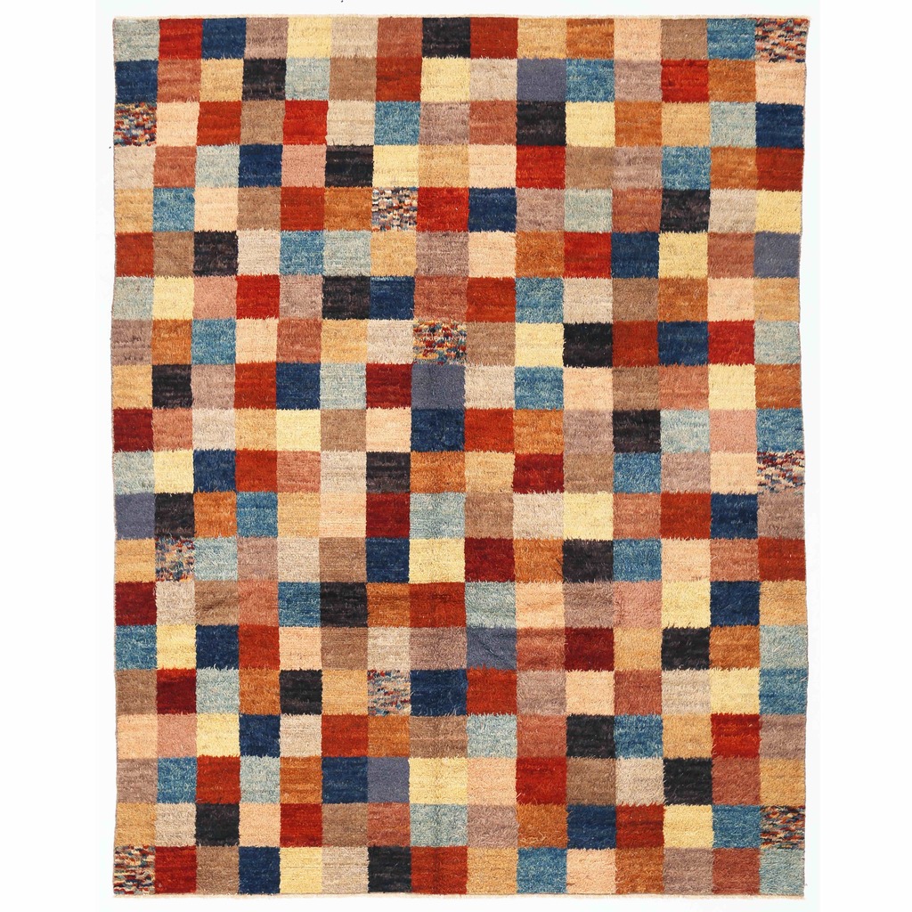 Gabbeh carpets originate in another region but are now famously made in Afghanistan, where local weavers use beautiful vegetable dyes to produce the traditional geometric, almost cubist designs. Despite being traditional and ancient the designs are quite modern looking and very popular in today’s homes. This particular carpet has a longer pile to produce a natural shag rug made by hand with precision and soft plush wool. The vegetable dyes most commonly used are madder, the root of a spindly bush, which is used to create a red color, walnut peel for dark brown, pomegranate peel for light brown, and sparak, which is a wildflower from the steppes, is used for yellow. The process of making a rug includes cleaning, washing and dyeing the wool which is sourced from local villages.