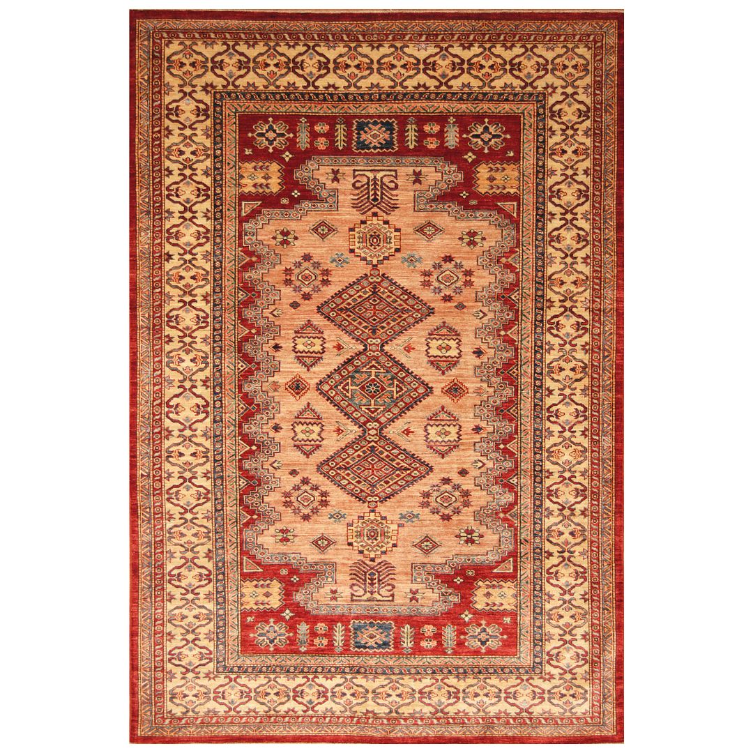 Kazaks are a type of Armenian rug that were historically woven in the southern portion of the Caucasus region of the Middle East. The production of rugs in that region is limited to the villages practicing traditional weaving, therefore these beautiful designs are reproduced by Afghan weavers in the northern and central parts of Afghanistan. Local elements of design and construction bring a unique beauty to the ancient patterns that the weavers create. Super Kazaks have a finer quality of wool and higher knot count per square inch compared to the regular Kazaks. The process of making a rug includes cleaning, washing and dyeing the wool which is sourced from local villages.