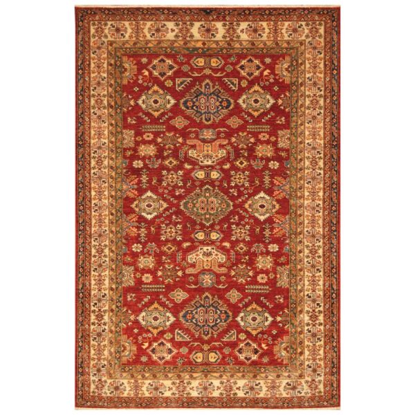 Kazaks are a type of Armenian rug that were historically woven in the southern portion of the Caucasus region of the Middle East. The production of rugs in that region is limited to the villages practicing traditional weaving, therefore these beautiful designs are reproduced by Afghan weavers in the northern and central parts of Afghanistan. Local elements of design and construction bring a unique beauty to the ancient patterns that the weavers create. Super Kazaks have a finer quality of wool and higher knot count per square inch compared to the regular Kazaks. The process of making a rug includes cleaning, washing and dyeing the wool which is sourced from local villages.