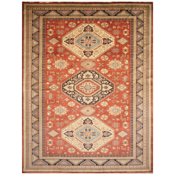 Kazaks are a type of Armenian rug that were historically woven in the southern portion of the Caucasus region of the Middle East. The production of rugs in that region is limited to the villages practicing traditional weaving, therefore these beautiful designs are reproduced by Afghan weavers in the northern and central parts of Afghanistan. Local elements of design and construction bring a unique beauty to the ancient patterns that the weavers create. Super Kazaks have a finer quality of wool and higher knot count per square inch compared to the regular Kazaks. The process of making a rug includes cleaning, washing and dyeing the wool which is sourced from local villages.