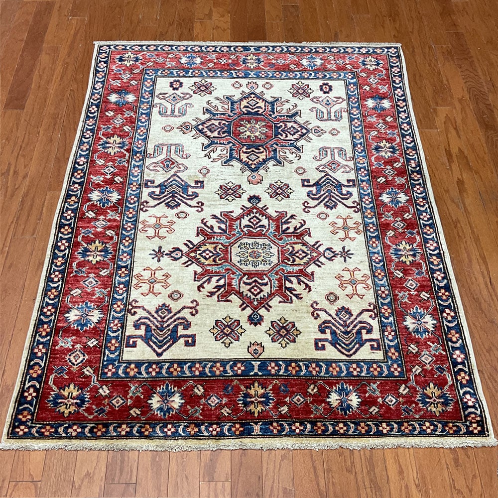 Afghan Hand-knotted Super Kazak Wool Rug (4’1 x 5’5)