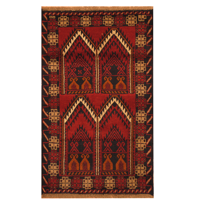 Afghan Hand-knotted Tribal Balouchi Wool Rug (2’8 x 4’8)