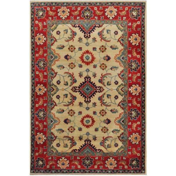 Afghan Hand-knotted Tribal Kazak Wool Rug (4′ x 6’2)