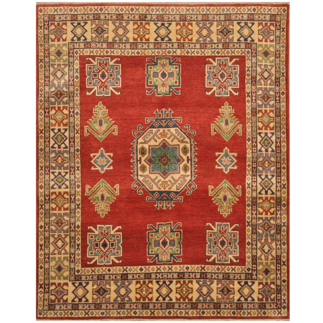 Afghan Hand-knotted Tribal Kazak Wool Rug (5′ x 6’3)