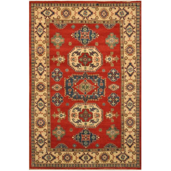 Afghan Hand-knotted Tribal Kazak Wool Rug (6′ x 9′)
