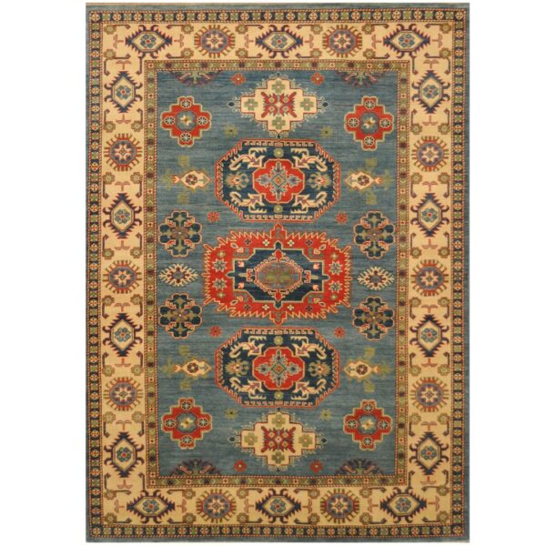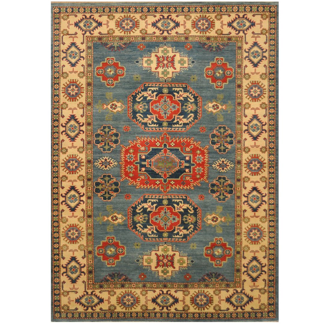 Kazaks are a type of Armenian rug that were historically woven in the southern portion of the Caucasus region of the Middle East. The production of rugs in that region is limited to the villages practicing traditional weaving, therefore these beautiful designs are reproduced by Afghan weavers in the northern and central parts of Afghanistan. Local elements of design and construction bring a unique beauty to the ancient patterns that the weavers create. The process of making a rug includes cleaning, washing and dyeing the wool which is sourced from local villages.