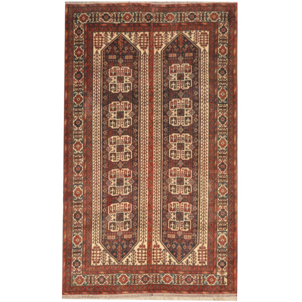 Turkoman rugs are a very traditional tribal rug produced by different groups living in regions of the middle east. They are renowned for their deep, rich red colors, and the use of the repeated elephant foot design, a popular motif with a history that stretches back several centuries. This particular rug was made by village weavers settled in central Afghanistan using traditional methods of weaving.
