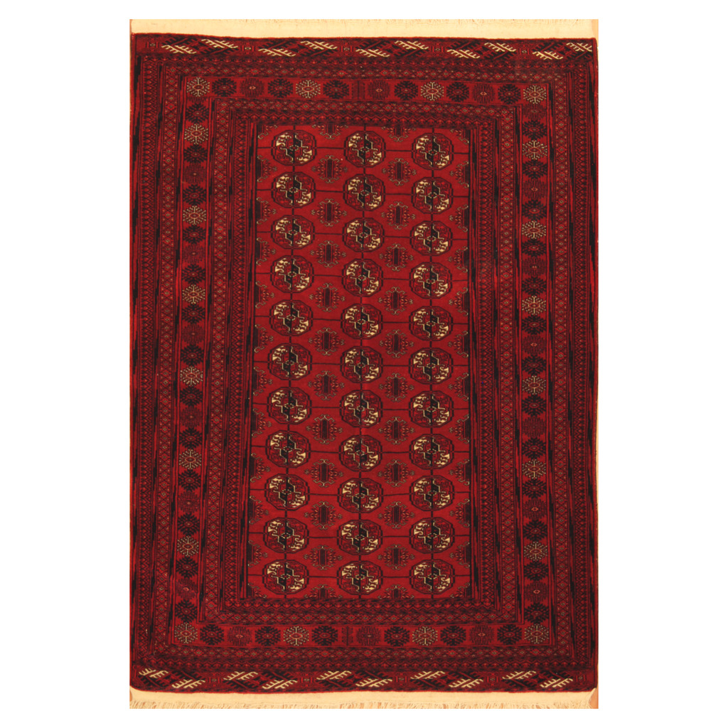 Afghan Hand-knotted Tribal Turkoman Wool Rug (4′ x 5’6)