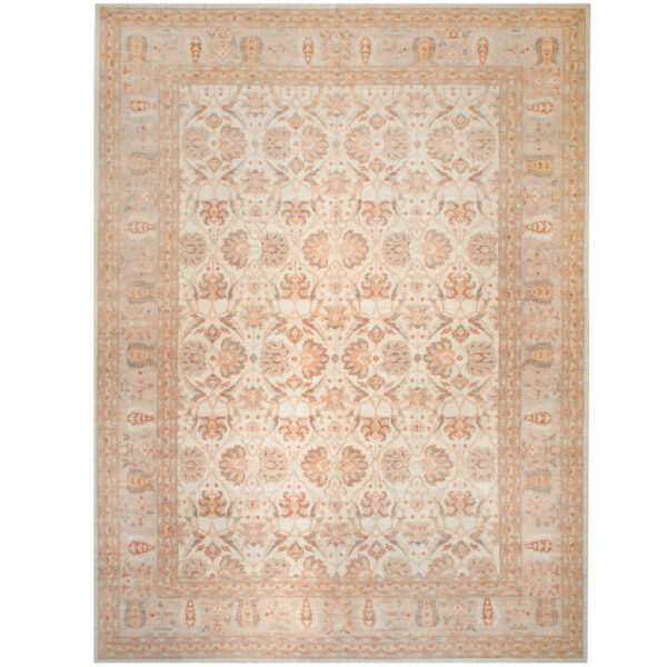 The design of this rug originates from Antique Turkish Oushak rugs which are extremely rare and expensive. The Afghan weavers have been able to re-create these beautiful rugs which resemble similarities to the originals, with high quality hand-spun wool and pure vegetable dyes. Afghan Vegetable Dye Oushak designs are made in the Northern part of Afghanistan by Turkoman weavers, as well as central Afghanistan by Hazara weavers. Those vegetable dyes most commonly used are madder, the root of a spindly bush which grows abundantly in many carpet-producing area which is used to create a red color. Walnut peel is used for dark brown, pomegranate peel for light brown, and sparak which is a wild flower from the steppes, used for yellow.
