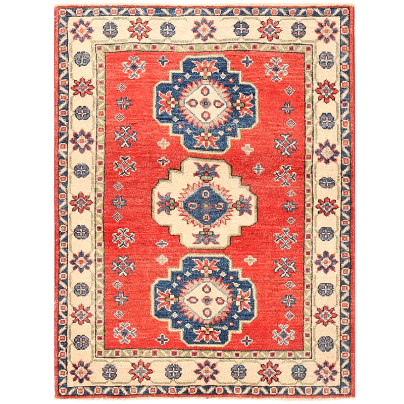 Afghan Hand-knotted Vegetable Dye Kazak Wool Rug (2’10 x 3’8)