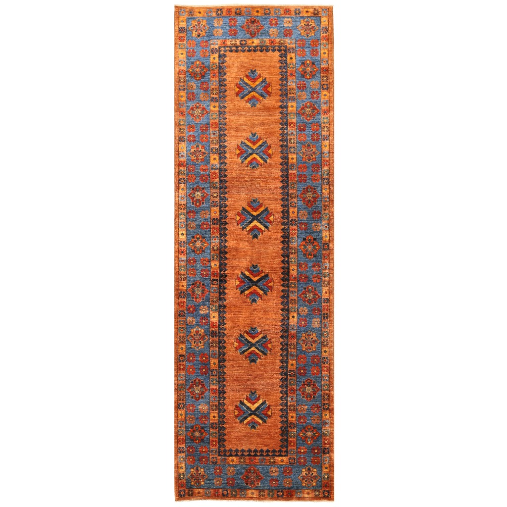 Afghan Hand-knotted Vegetable Dye Kazak Wool Runner (3’1 x 9’10)