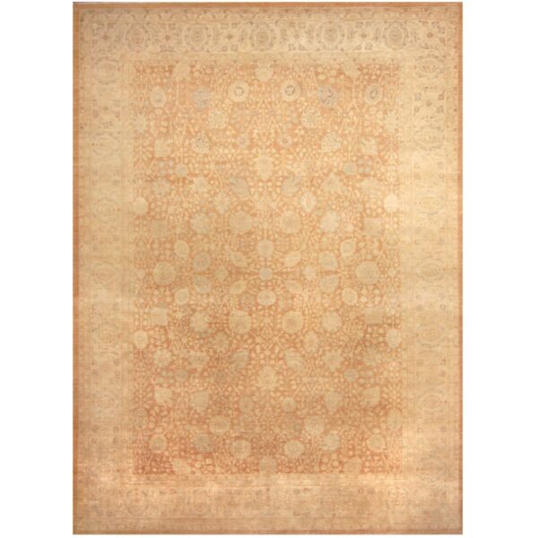 The design of this rug originates from Antique Turkish Oushak rugs which are extremely rare and expensive. The Afghan weavers have been able to re-create these beautiful rugs which resemble similarities to the originals, with high quality hand-spun wool and pure vegetable dyes. The antique Turkish Oushak design has been reproduced by Afghan weavers in the villages of northern Afghanistan by the Turkoman and Hazara tribes. This particular rug was made by village weavers settled in central Afghanistan using traditional methods of weaving. The process of making a rug includes cleaning, washing and dyeing the wool which is sourced from local villages. Those vegetable dyes most commonly used are madder, the root of a spindly bush which grows abundantly in many carpet-producing area which is used to create a red color. Walnut peel is used for dark brown, pomegranate peel for light brown, and sparak which is a wild flower from the steppes, used for yellow.
