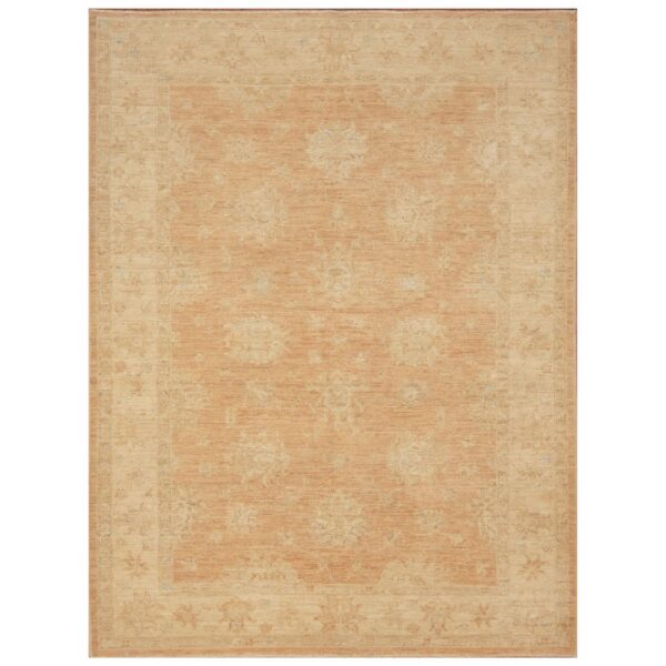 The design of this rug originates from Antique Turkish Oushak rugs which are extremely rare and expensive. The Afghan weavers have been able to re-create these beautiful rugs which resemble similarities to the originals, with high quality hand-spun wool and pure vegetable dyes. The antique Turkish Oushak design has been reproduced by Afghan weavers in the villages of northern Afghanistan by the Turkoman and Hazara tribes. This particular rug was made by village weavers settled in central Afghanistan using traditional methods of weaving. The process of making a rug includes cleaning, washing and dyeing the wool which is sourced from local villages. Those vegetable dyes most commonly used are madder, the root of a spindly bush which grows abundantly in many carpet-producing area which is used to create a red color. Walnut peel is used for dark brown, pomegranate peel for light brown, and sparak which is a wild flower from the steppes, used for yellow.
