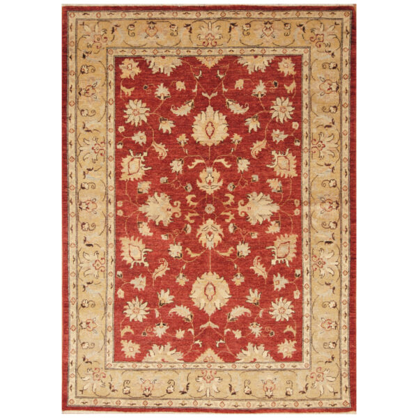 The design of this rug originates from Antique Turkish Oushak rugs which are extremely rare and expensive. The Afghan weavers have been able to re-create these beautiful rugs which resemble similarities to the originals, with high quality hand-spun wool and pure vegetable dyes. The antique Turkish Oushak design has been reproduced by Afghan weavers in the villages of northern Afghanistan by the Turkoman and Hazara tribes. This particular rug was made by village weavers settled in central Afghanistan using traditional methods of weaving. The process of making a rug includes cleaning, washing and dyeing the wool which is sourced from local villages. Those vegetable dyes most commonly used are madder, the root of a spindly bush which grows abundantly in many carpet-producing area which is used to create a red color. Walnut peel is used for dark brown, pomegranate peel for light brown, and sparak which is a wild flower from the steppes, used for yellow.