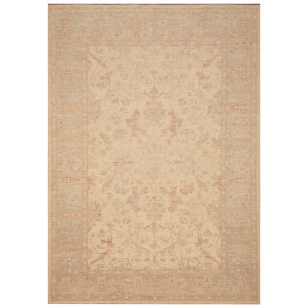 The design of this rug originates from Antique Turkish Oushak rugs which are extremely rare and expensive. The Afghan weavers have been able to re-create these beautiful rugs which resemble similarities to the originals, with high quality hand-spun wool and pure vegetable dyes. The antique Turkish Oushak design has been reproduced by Afghan weavers in the villages of northern Afghanistan by the Turkoman and Hazara tribes. This particular rug was made by village weavers settled in central Afghanistan using traditional methods of weaving. The process of making a rug includes cleaning, washing and dyeing the wool which is sourced from local villages. Those vegetable dyes most commonly used are madder, the root of a spindly bush which grows abundantly in many carpet-producing area which is used to create a red color. Walnut peel is used for dark brown, pomegranate peel for light brown, and sparak which is a wild flower from the steppes, used for yellow.