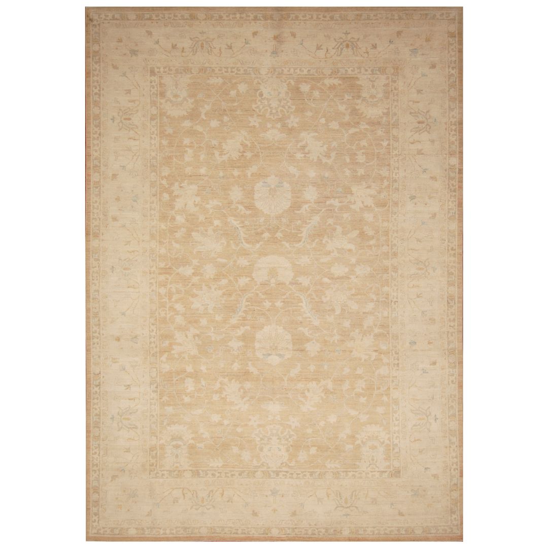 The design of this rug originates from Antique Turkish Oushak rugs which are extremely rare and expensive. The Afghan weavers have been able to re-create these beautiful rugs which resemble similarities to the originals, with high quality hand-spun wool and pure vegetable dyes. The antique Turkish Oushak design has been reproduced by Afghan weavers in the villages of northern Afghanistan by the Turkoman and Hazara tribes. This particular rug was made by village weavers settled in central Afghanistan using traditional methods of weaving. The process of making a rug includes cleaning, washing and dyeing the wool which is sourced from local villages. Those vegetable dyes most commonly used are madder, the root of a spindly bush which grows abundantly in many carpet-producing area which is used to create a red color. Walnut peel is used for dark brown, pomegranate peel for light brown, and sparak which is a wild flower from the steppes, used for yellow.