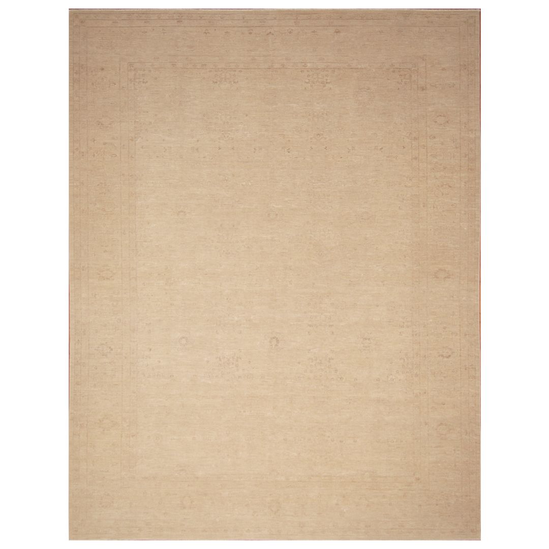 The design of this rug originates from Antique Turkish Oushak rugs which are extremely rare and expensive. The Afghan weavers have been able to re-create these beautiful rugs which resemble similarities to the originals, with high quality hand-spun wool and pure vegetable dyes. The antique Turkish Oushak design has been reproduced by Afghan weavers in the villages of northern Afghanistan by the Turkoman and Hazara tribes. This particular rug was made by village weavers settled in central Afghanistan using traditional methods of weaving. The process of making a rug includes cleaning, washing and dyeing the wool which is sourced from local villages. Those vegetable dyes most commonly used are madder, the root of a spindly bush which grows abundantly in many carpet-producing area which is used to create a red color. Walnut peel is used for dark brown, pomegranate peel for light brown, and sparak which is a wild flower from the steppes, used for yellow.