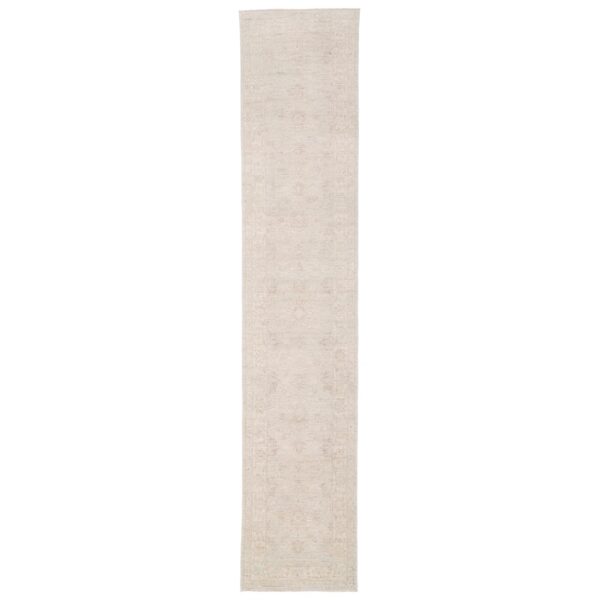 Afghan Hand-knotted Vegetable Dye Whitewash Oushak Wool Runner (2’4 x 11’4)