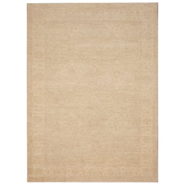 The design of this rug originates from Antique Turkish Oushak rugs which are extremely rare and expensive. The Afghan weavers have been able to re-create these beautiful rugs which resemble similarities to the originals, with high quality hand-spun wool and pure vegetable dyes. The antique Turkish Oushak design has been reproduced by Afghan weavers in the villages of northern Afghanistan by the Turkoman and Hazara tribes. This particular rug was made by village weavers settled in central Afghanistan using traditional methods of weaving. The process of making a rug includes cleaning, washing and dyeing the wool which is sourced from local villages. Those vegetable dyes most commonly used are madder, the root of a spindly bush which grows abundantly in many carpet-producing area which is used to create a red color. Walnut peel is used for dark brown, pomegranate peel for light brown, and sparak which is a wild flower from the steppes, used for yellow.