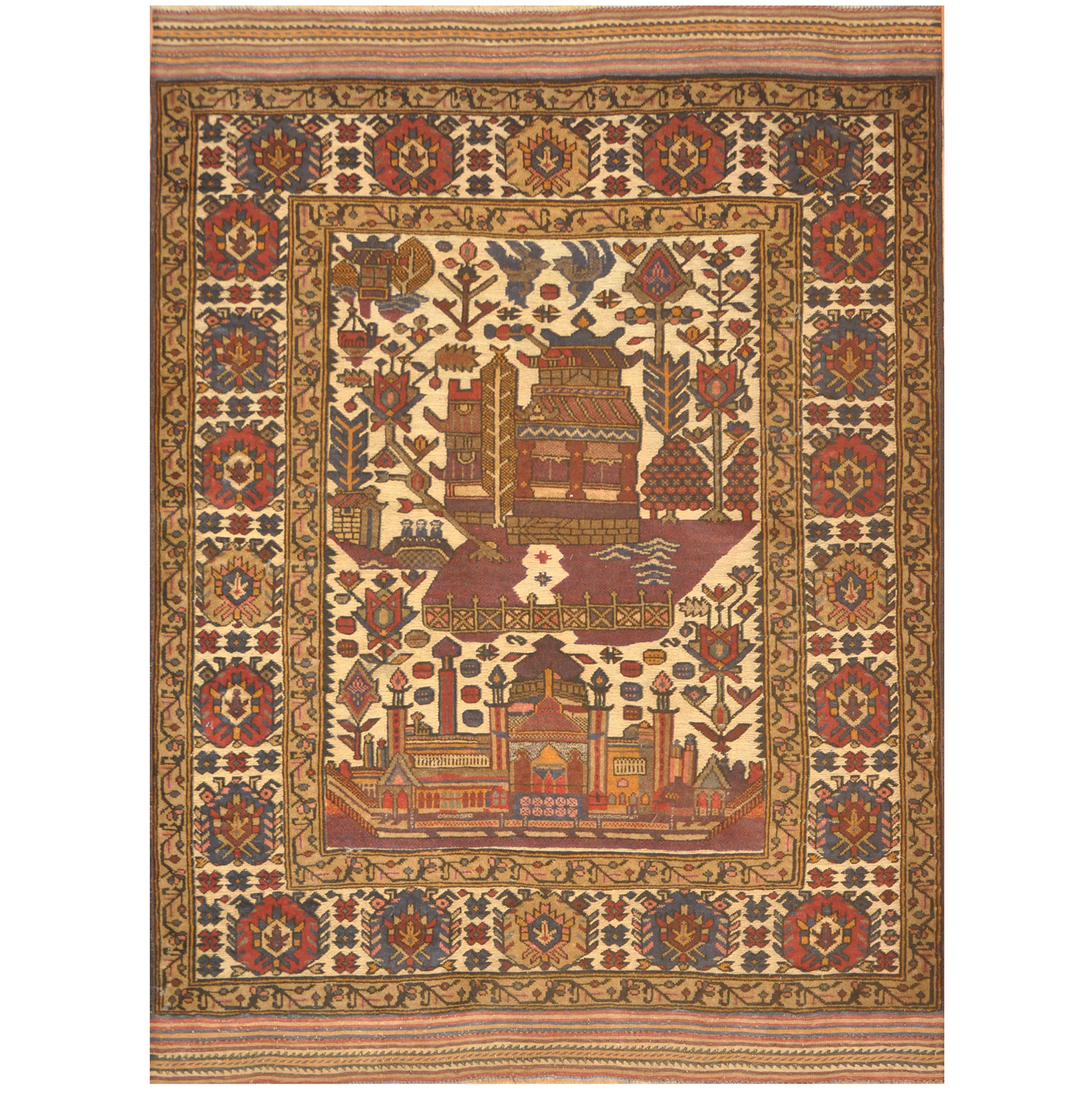 Soumak kilims refer to a style of rug called flat weave that has no knots used in the weaving process and the surface looks flat. The warp strands are used as the foundation and the weft strands are used as both part of the foundation and in creating the at times intricate patterns. The weft strands are simply passed through the warp strands. This particular rug was made by village weavers following traditional methods of weaving. The process of making a rug includes cleaning, washing and dyeing the wool which is sourced from local villages.