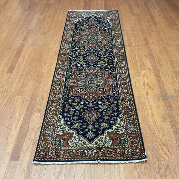 Protect your hardwood or tile floors with this beautiful Heriz wool runner. This runner is a true piece of art that gives your decor an elegant and refined look that is perfect for traditional spaces. This rug is hand-knotted to offer the best in quality and craftsmanship that continues to stand the test of time. The neutral color scheme seamlessly fits into your classic decor, and the material is free of latex to guard against allergic reactions. Due to the handmade nature of our rugs, the size may vary from as advertised by 3-4 inches. Regular vacuuming and annual professional cleaning will keep your rug looking new for years to come.