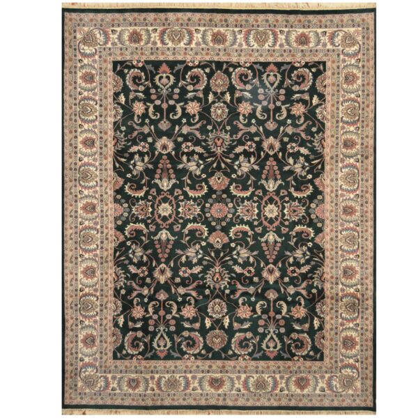 Kashan is a historic city in the province of Isfahan. This region is famous for their rug weaving, which goes back to the Safavieh dynasty workshop rugs, that was created in Kashan county. The sanction on Iranian imports created an opportunity for weavers in India to reproduce the original Persian designs. For instance, this rug’s design is Kashan from Persian influence but created by village weavers in the Varanasi region of India.