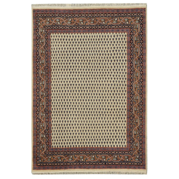 Sarouk Mir rugs are among the most popular with Persian rug enthusiasts due to their special designs, rich colors, durability and traditional workmanship. This particular rug was re-created by the village weavers in the Bhadohi region of India. The weavers obtain their dyes naturally from local vegetables, flowers, tree bark and minerals.