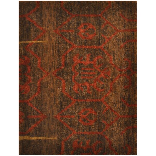 The design of this rug originated in Tibet but is made in the northern part of India, in Varanasi. Tibetan rugs are typically designed with geometric patterns, both simple and complex. You may also see Tibetan rugs with a bold center or all-over medallion or even various designs that were influenced by decorative Asian motifs.