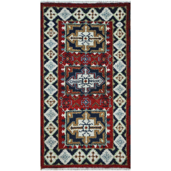 Indo Hand-knotted Tribal Kazak Wool Rug (2′ x 4′)