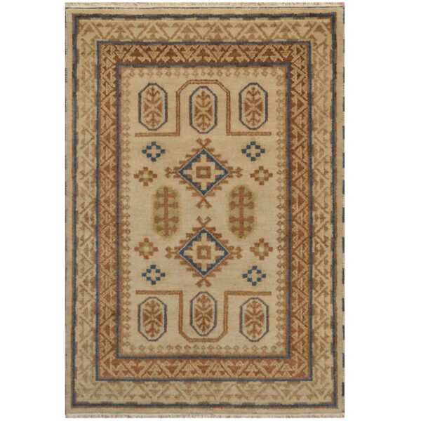 Indo Hand-knotted Tribal Kazak Wool Rug (4’2 x 6′)