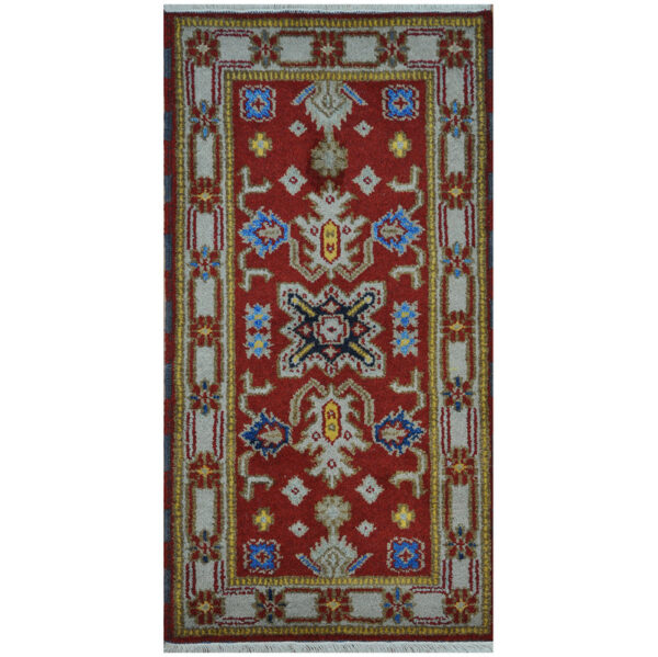 Indo Hand-Knotted Tribal Kazak Wool Rug (2′ x 4′)