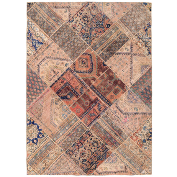The remarkable patchwork rug is a one of a kind rug that was crafted using remnants of antique hand-knotted wool rugs. The remnants can come from torn or damaged pieces of Persian antique rugs that could no longer be used as one whole rug, so they are put together as a patchwork rug to preserve the good parts of these rugs.