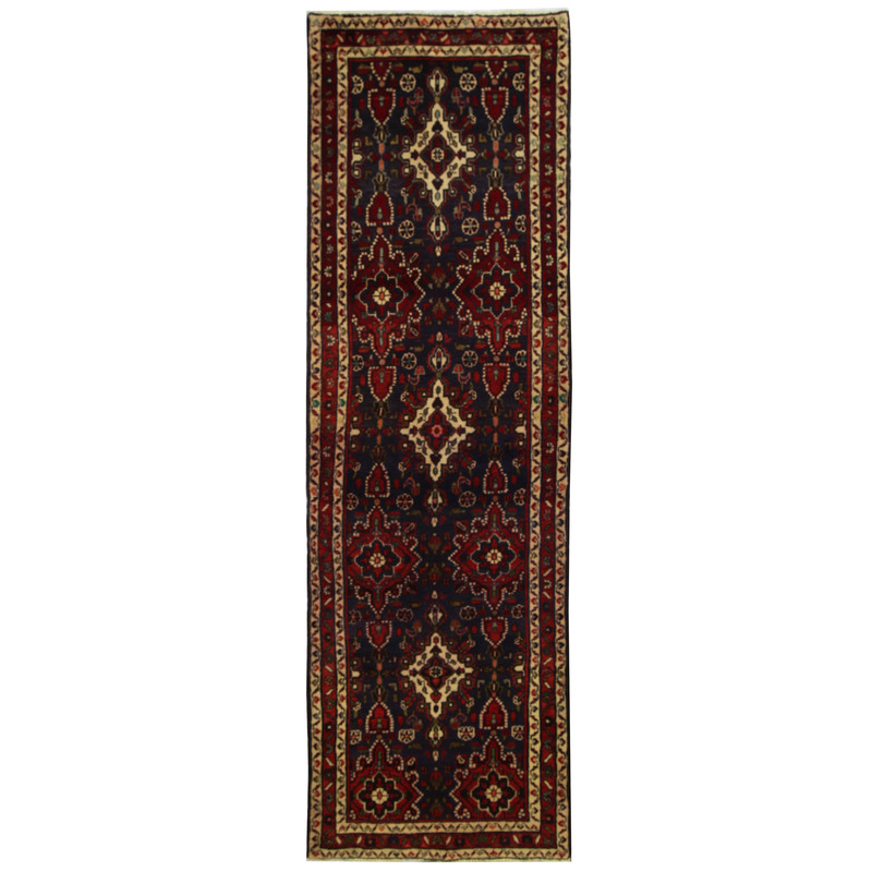 Persian Hand-knotted Hamadan Wool Runner (3′ x 9’8)